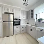 - ❓Is there a kitchen available at this apartment for guest use?Yes, this apartment is furnished with a fully equipped kitchen and offers an electric kettle, a refrigerator, and a stove top as well.